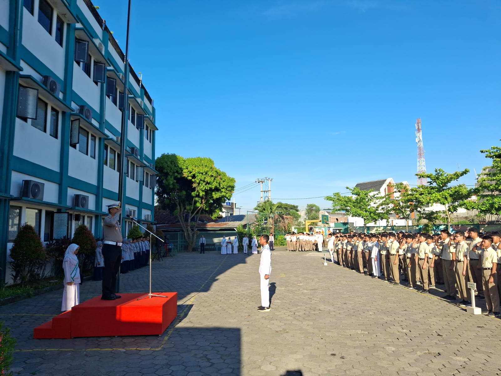 ​Kegiatan yang berlangsung di Kecamatan Cibeber ini berjalan dengan khidmat. Kehadiran jajaran PJU Polda Banten dan Polres Cilegon disambut hangat oleh pihak sekolah dan para siswa yang antusias mengikuti jalannya upacara dari awal hingga selesai.