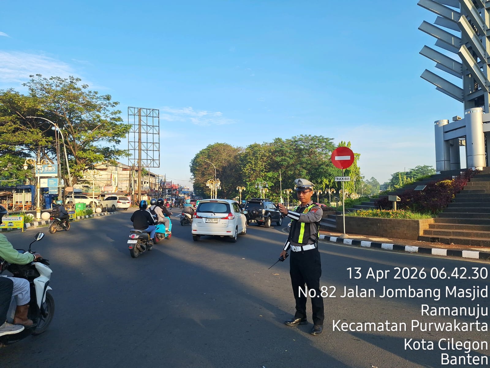Cilegon – Polres Cilegon Polda Banten, Dalam Mewujudkan Aksi Nyata Pelayanan Kepada Masyarakat, Personil Satlantas Polres Cilegon Polda Banten Laksanakan PECAK (Pergelaran Cepat Anggota Kepolisian) Pengaturan Lalu lintas di wilayah perkotaaan terutama di titik rawan kemacetan dan kecelakaan lalu lintas, Senin (13/04/2026).