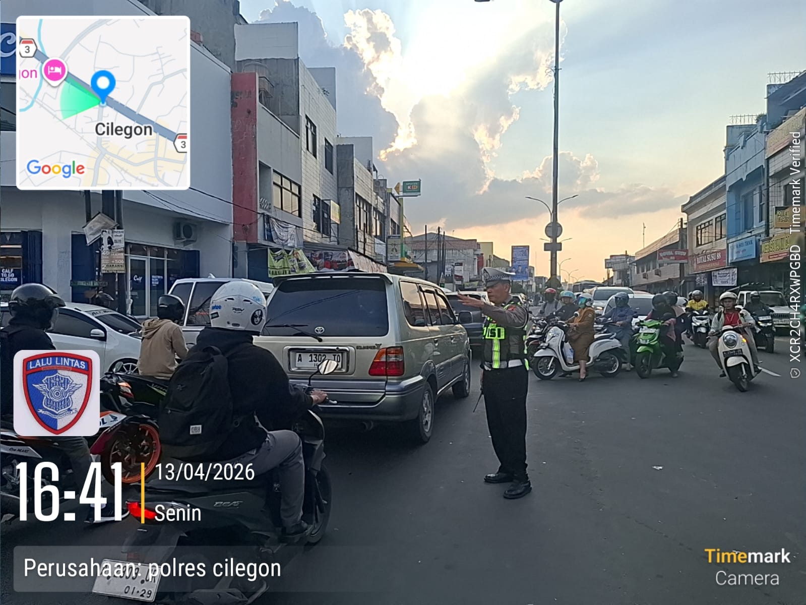 Cilegon – Polres Cilegon Polda Banten, Dalam Mewujudkan Aksi Nyata Pelayanan Kepada Masyarakat, Personil Satlantas Polres Cilegon Polda Banten Laksanakan PECAK (Pergelaran Cepat Anggota Kepolisian) Pengaturan Lalu lintas di wilayah perkotaaan terutama di titik rawan kemacetan dan kecelakaan lalu lintas, Senin (13/04/2026).