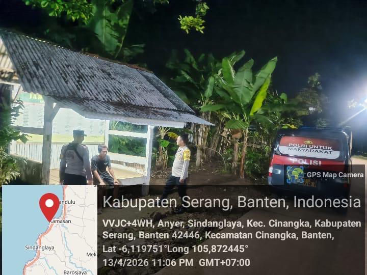 *Cilegon* – Dalam Rangka Pencegahan Kejahatan Jalanan dan Memelihara situasi keamanan dan menjaga serta memberikan rasa aman dan nyaman di masyarakat,Salah satu upaya untuk mewujudkan hal tersebut sebagaimana yang dilakukan oleh Personil Polsek Cinangka Polres Cilegon Polda Banten melaksanakan giat patroli blue light malam hari hingga menjelang pagi, Selasa (14/04/2026).