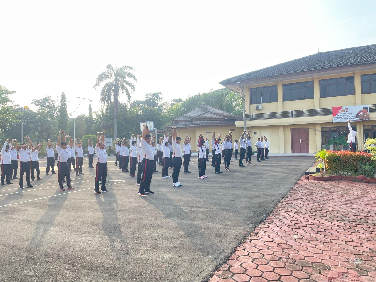 ASN Polres Cilegon dengan rangkaian kegiatan berupa Olahraga Bersama.