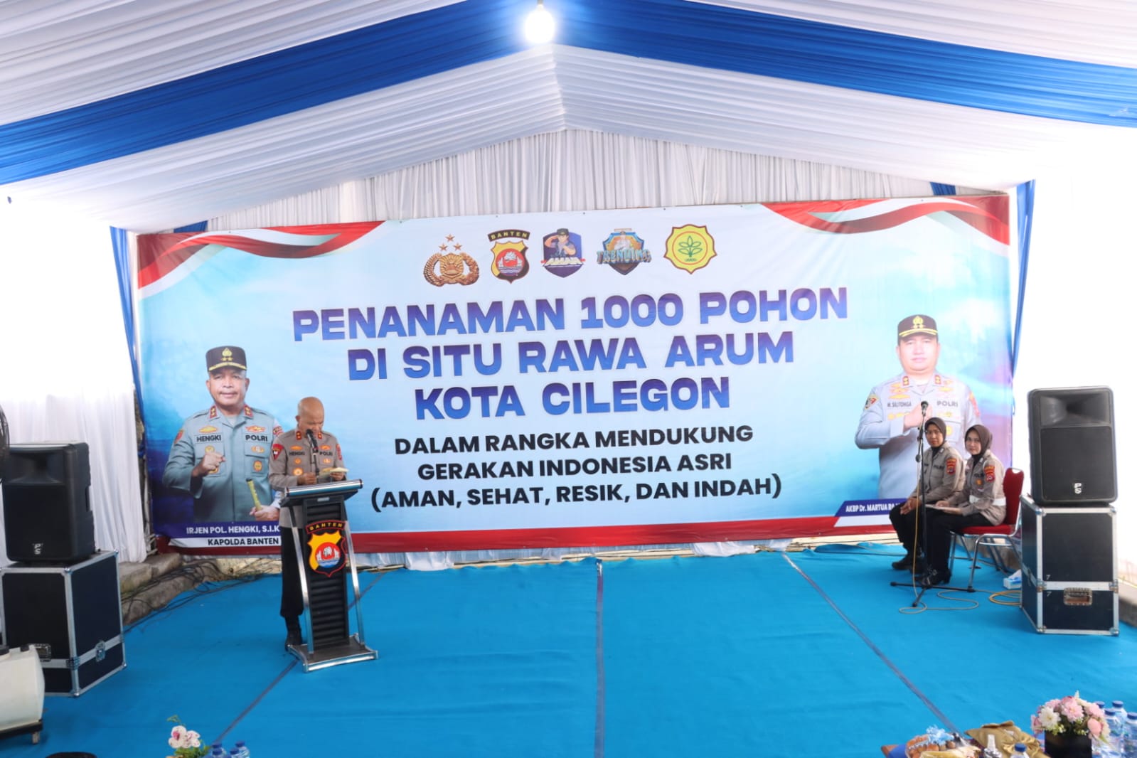 Cilegon – Upaya nyata menjaga kelestarian lingkungan terus digencarkan. Polda Banten bersama unsur TNI, pemerintah daerah, dan masyarakat menggelar kegiatan penanaman 1.000 pohon di kawasan Situ Rawa Arum, Kelurahan Rawa Arum, Kecamatan Grogol, Kota Cilegon, Jumat (17/04/2026).